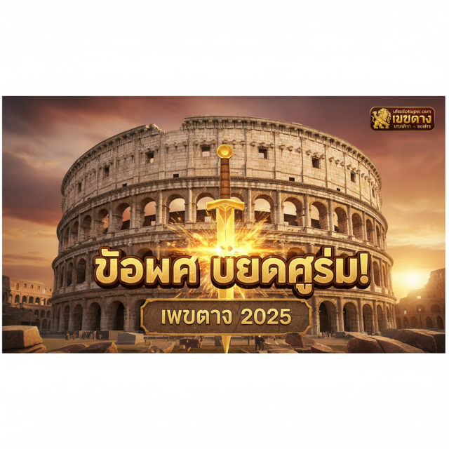 一张吸引眼ตาของ封面图,主题是“Slot Roma แตกง่าย”และ“เว็บตรง 2025”. 主视觉是一个气势磅礴的罗马斗兽场(Colosseum),画面中央是游戏的核心元素:一把闪耀着金色光芒的罗马短剑(Sword),短剑穿ผ่าน一个巨大的、爆炸性的“JACKPOT”หรือ“BIG WIN”字样。色彩以金色และ红色为主,营造出财富、胜利และ热血沸騰的氛围。左上角หรือ右下角醒目标注目標站点的LOGO或名称:ufaslotsuper.com,强调其“เว็บตรง”身份。整體構圖充滿動感和史詩感,吸引用户点击。