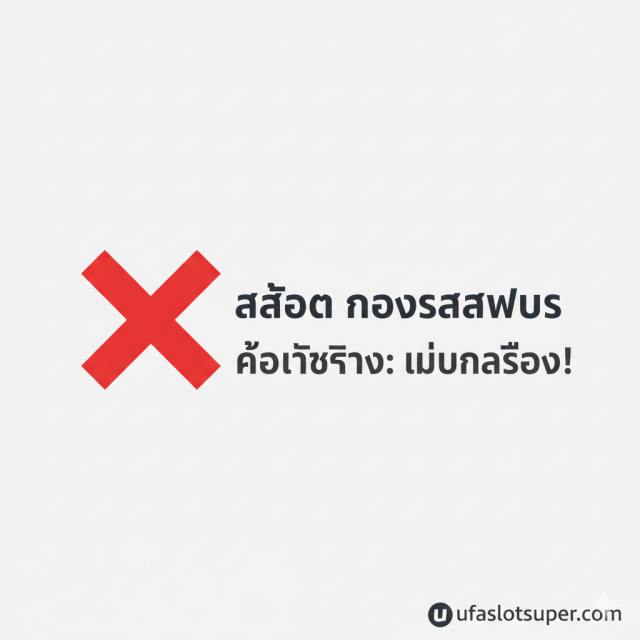 一张“事实核查”风格的信息图。图片中心是一个巨大的、醒목的红色“X”标记,叠加ใน泰文“สล็อต กองสลากพลัส”之上,旁边用清晰的字体写着“ข้อเท็จจริง: ไม่เกี่ยวข้อง!”(事实:无关联!)。设计风格简洁、权威,使用白色、红色(警告)และ深灰色,营造出新闻หรือ官方澄清的氛围。“ufaslotsuper.com”的标志巧妙地放在角落,表明其是这一清晰信息的提供者。